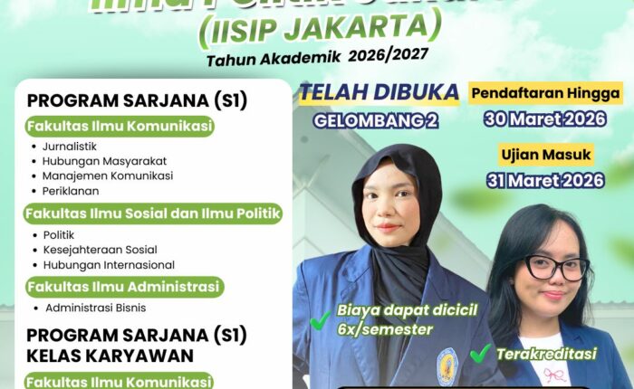 Selamat datang di Kampus Tercinta, Institut Ilmu Sosial dan Ilmu Politik (IISIP) Jakarta. Sebagai perguruan tinggi swasta yang berdiri sejak 70 tahun yang lalu, kami berkomitmen untuk menempatkan upaya mencerdaskan kehidupan bangsa, sebagai kelanjutan dari perjuangan fisik para pendiri dalam meraih kemerdekaan Republik Indonesia.