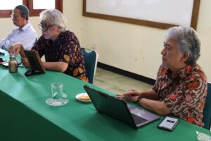 Tiga Dosen penguji sidang Tesis Prodi Pasca Sarjana Ilmu Komunikasi IISIP Jakarta, melakukan diskusi tanya jawab kepada peserta sidang Tesis, Kamis (07/08/2025). Foto: IISIP Jakarta