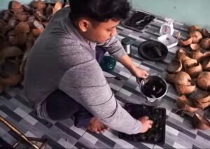 “Arang briket ini tuh bisa tahan lama empat sampai lima jam. Arang ini punya value dibandingkan dengan arang batok biasa,” jelasnya.