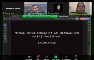 Selama acara berlangsung, Rachmayani juga memberikan materi kepada peserta webinar mengenai peran media sosial dalam membangun Palestina. Menurutnya, paparan ini menjadi salah satu teknis bagaimana media sosial dapat berperan membangun solidaritas masyarakat global, untuk mengadvokasi dan memperjuangkan isu Palestina.