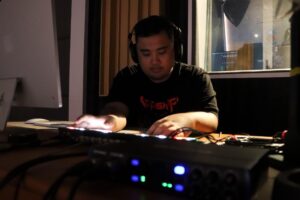 Mahasiswa IISIP Jakarta sedang mengoperasionalkan alat video dan audio switcher di laboratorium podcast IISIP Jakarta, dalam praktik produksi melalui mata kuliah Jurnalistik Multimedia, Rabu (5/11/2025). Foto: Muhamad Farhan
