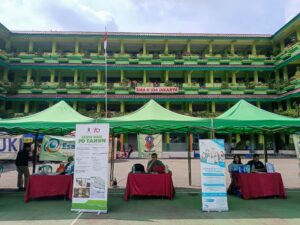 Suasana stand booth IISIP Jakarta pada saat mengikuti kegiatan Edu Fair di SMAN 104 Jakarta, Rabu (19/11/2025). Foto: Muhamad Farhan