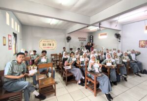 Suasana ruang kelas SMA Putra Bangsa Depok, pada saat tim IISIP Jakarta memaparkan profil Kampus Tercinta di kegiatan Edu Expo yang digelar di sekolah tersebut. Foto: IISIP Jakarta