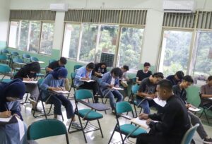 Proses pelaksanaan ujian berbasis tertulis yang dilakukan mahasiswa Kampus Tercinta di ruang kelas IISIP Jakarta. Foto: Muhamad Farhan