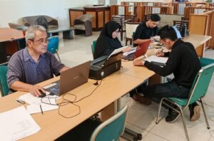 Potret Posko Ujian IISIP Jakarta dikunjungi mahasiswa untuk melakukan konsultasi kepada tim posko. Foto: Muhamad Farhan