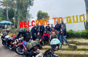 Potret sejumlah anggota LA 32 Riders, yang tengah melakukan touring tiba di Guci. Foto: LA 32 Riders