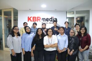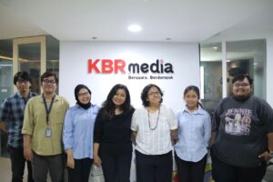 Potret Khalisa Putri mahasiswa magang IISIP Jakarta melakukan foto bersama tim KBR. Foto: Khalisa Putri