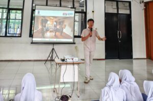 Potret alumni Kampus Tercinta Naufal Muzakki Erfo Pradana, S.Sos. saat berikan paparan mengenai IISIP Jakarta di hadapan siswa SMAN 4 Bogor, Senin (19/1/2026). Foto: IISIP Jakarta