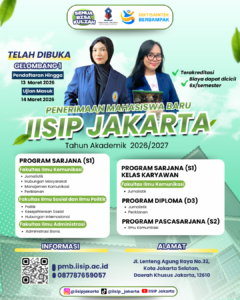 JAKARTA, IISIP – Kampus Tercinta Institut Ilmu Sosial dan Ilmu Politik Jakarta (IISIP Jakarta) kembali membuka Penerimaan Mahasiswa Baru (PMB) gelombang pertama Tahun Akademik 2026/2027. Pendaftaran ini tersedia untuk seluruh jenjang pendidikan mulai dari program Sarjana (S1), Magister (S2) dan Diploma (D3).
