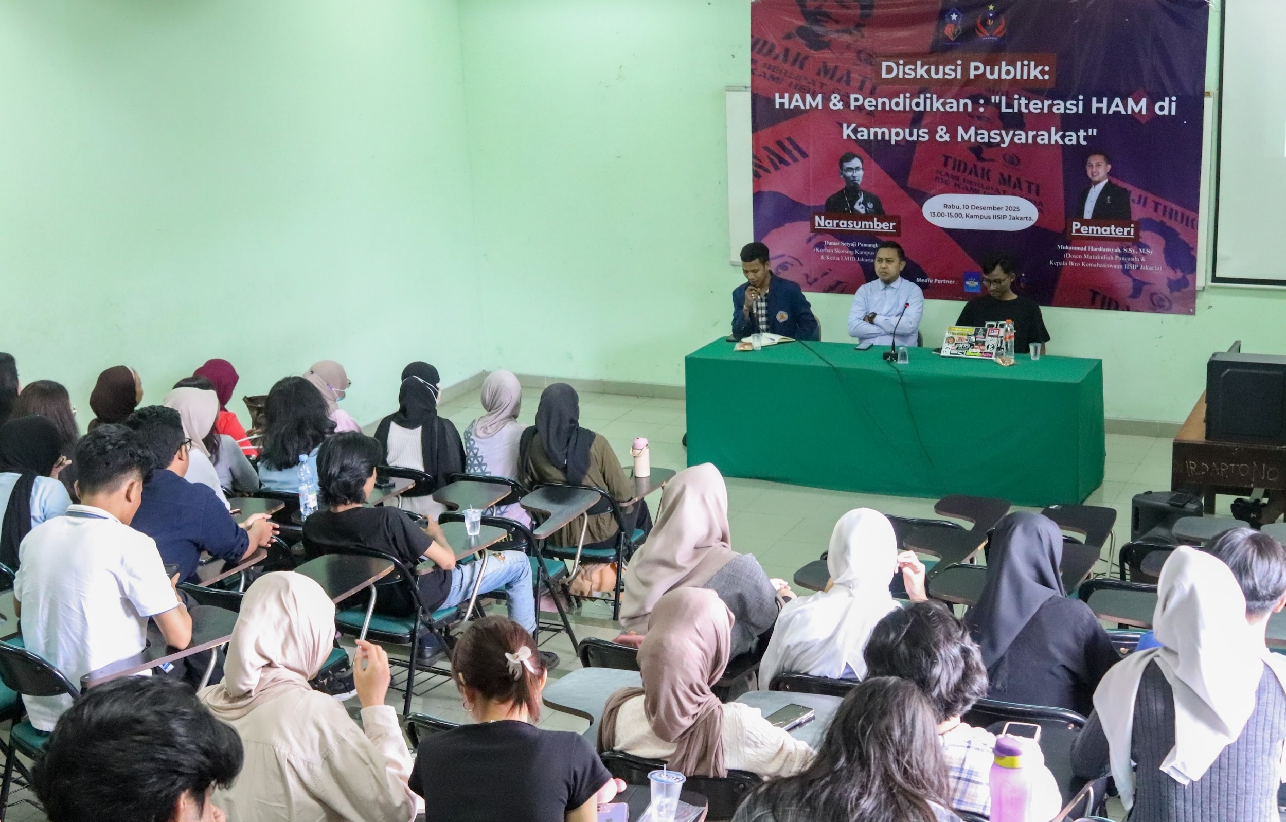 Suasana pelaksanaan diskusi publik yang di gelar BPM IISIP Jakarta di ruang AVA-B, bahas literasi HAM di kampus dan Masyarakat, Rabu (10/12/2025). Foto: Muhamad Farhan JAKARTA, IISIP – Badan Permusyawaratan Mahasiswa Institut Ilmu Sosial dan Ilmu Politik Jakarta (BPM IISIP Jakarta) menyelenggarakan diskusi publik dalam rangka memperingati Hari Hak Asasi Manusia (HAM) Sedunia di Ruang...Read More