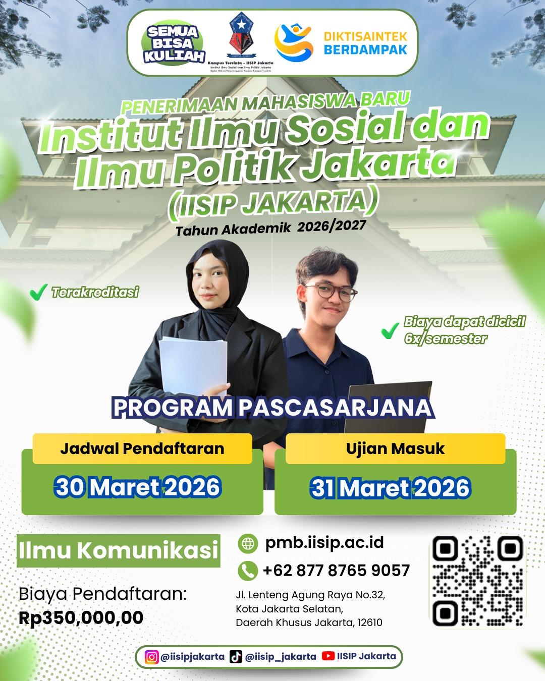 Program D3 Konsentrasi Ilmu Jurnalistik dan Periklanan IISIP Jakarta membuka Pendaftaran Mahasiswa Baru Tahun Akademik 2026/2027. Foto: IISIP Jakarta JAKARTA, IISIP – Program Diploma (D3) Konsentrasi . Jurnalistik dan Periklanan Institut Ilmu Sosial dan Ilmu Politik Jakarta (IISIP Jakarta) membuka Penerimaan Mahasiswa Baru (PMB) Tahun Akademik 2026/2027. Pendaftaran ini berlangsung hingga 30 Maret 2026, dengan...Read More