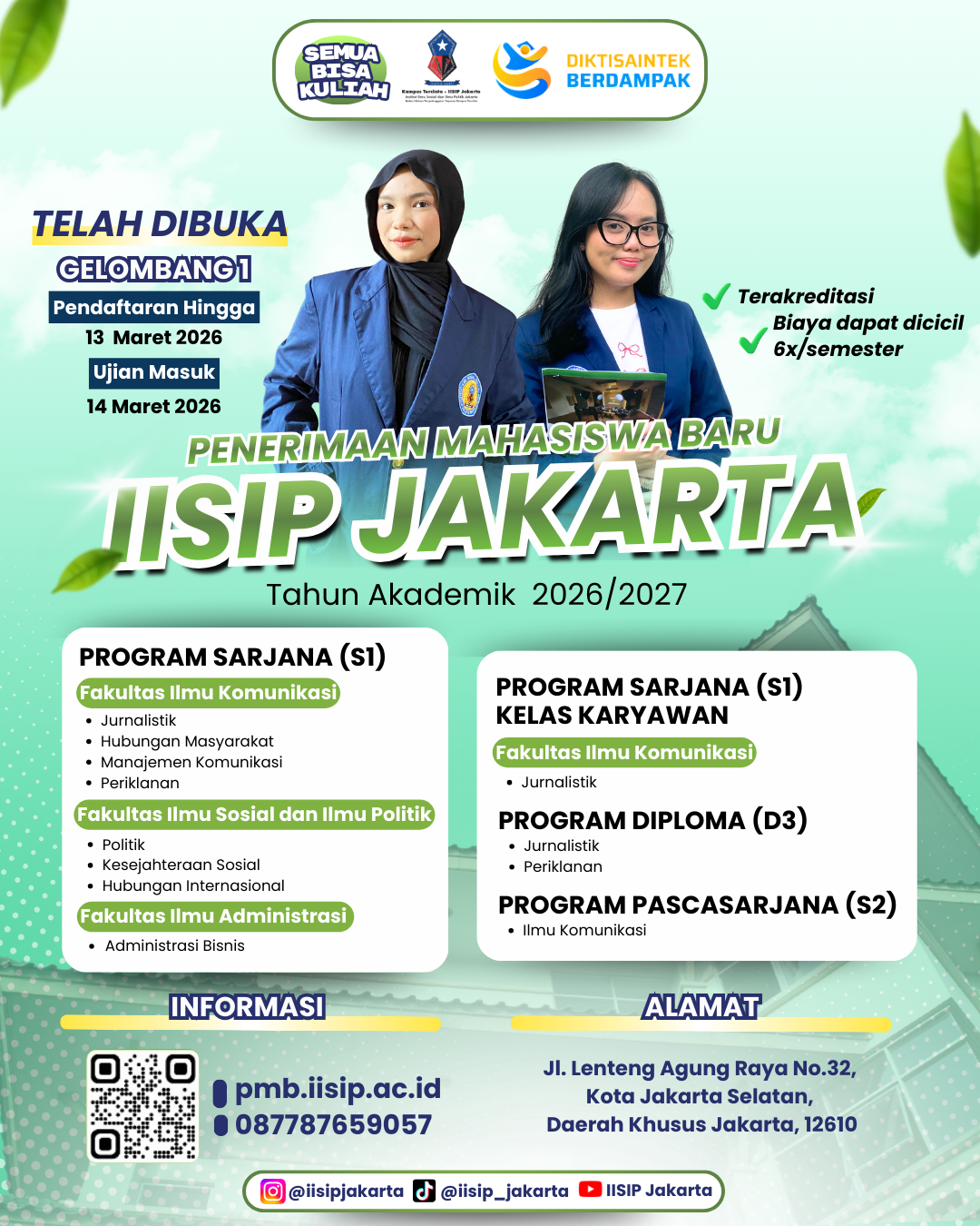 IISIP Jakarta buka Pendaftaran  Mahasiswa Baru (PMB) Tahun Akademik 2026/2027, bagi calon mahasiswa jika tertarik segera daftarkan sebelum di tutup. Foto: Muhamad Farhan JAKARTA, IISIP– Institut Ilmu Sosial dan Ilmu Politik Jakarta (IISIP Jakarta) masih membuka Penerimaan Mahasiswa Baru (PMB) gelombang pertama Tahun Akademik 2026/2027. Pendaftaran ini terbuka bagi calon mahasiswa yang ingin melanjutkan pendidikan...