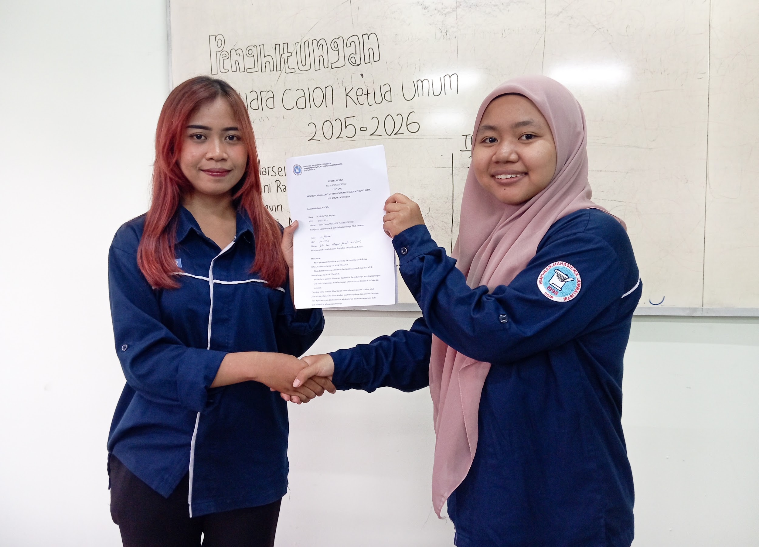 Potret Ani Ratna Sari (kanan) Ketua Umum HIMAJUR IISIP Jakarta periode 2025/2026, menerima penyerahan lembaran AD/ART yang diberikan Khalisa Putri Septiani (kiri) sebagai eks Ketua Umum periode 2024/2025 di ruang 2B.2 IISIP Jakarta, Jumat (10/10/2025). Foto: Muhamad Farhan JAKARTA, IISIP – Ketua Umum Himpunan Mahasiswa Jurnalistik Institut Ilmu Sosial dan Ilmu Politik Jakarta (HIMAJUR IISIP...